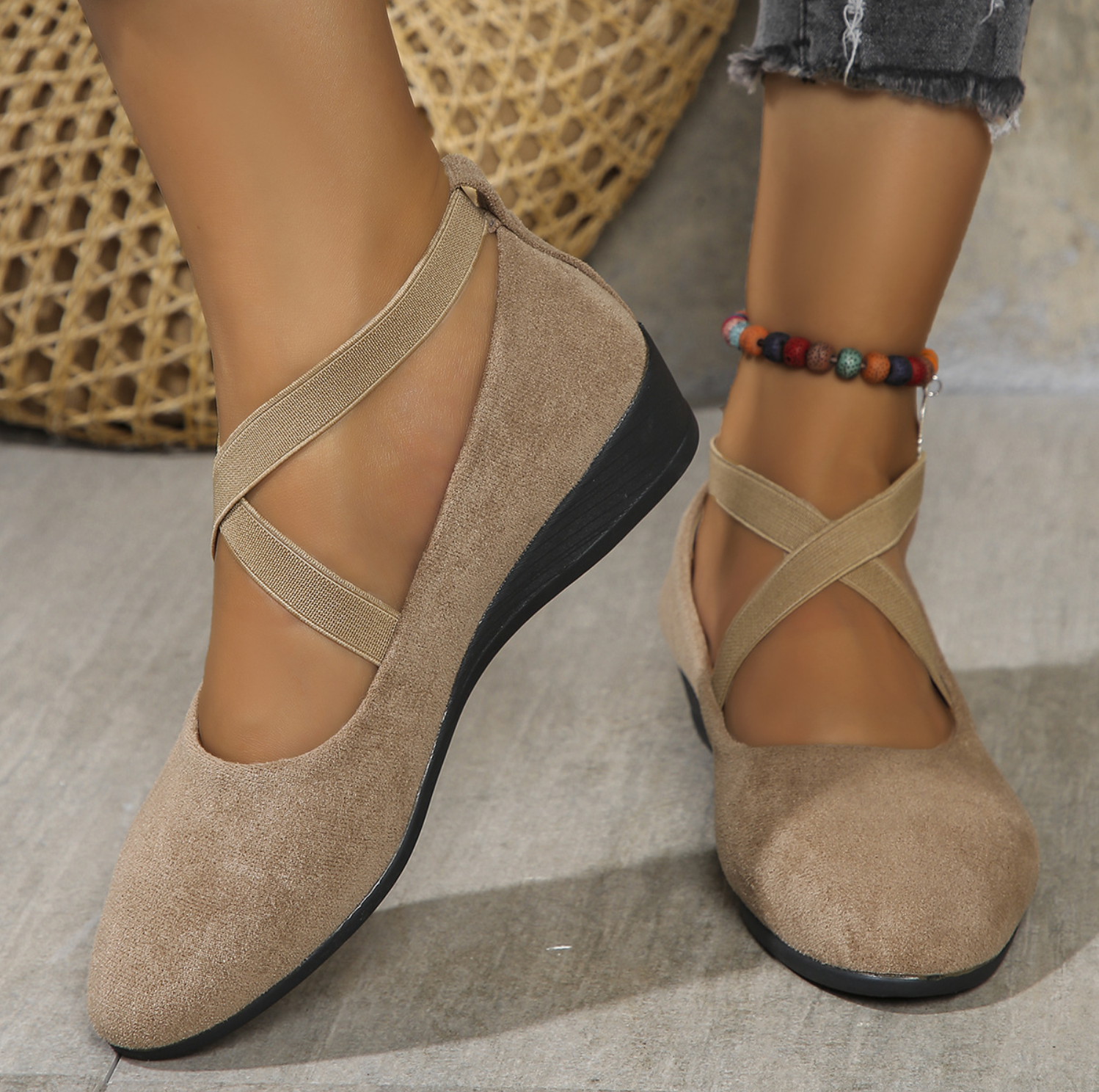 Ces escarpins compensés marient parfaitement l'élégance intemporelle et un design moderne pour sublimer toutes vos tenues. Leur finition sophistiquée apporte une touche de raffinement immédiate qui s'adapte aussi bien au bureau qu'en soirée, quel que soit le coloris choisi. Les brides croisées élastiques ne sont pas seulement esthétiques, elles assurent également un maintien optimal et un confort durable en toute circonstance.